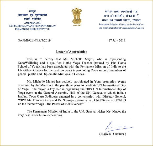 Letter of Appreciation from Permanent Mission of India to the United Nations, Geneva